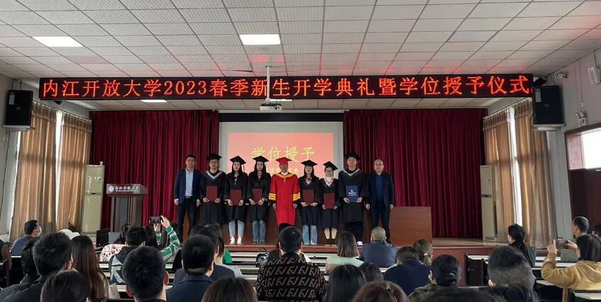 世界杯下单官方网站党委书记、校长 刘毅 致欢迎辞 接着,副校长刘安才宣读了2022年国家开放大学获取学位学生名单,向毕业生们表示热烈的祝贺,并寄语同学们勇担时代赋予的责任,追求进步,奉献社会。勉励新生们以他们为学习榜样,努力学习,做到学有所悟、学有所用。在节奏欢快的乐声中,参加学位授予6位毕业生互正衣冠,刘毅书记为他们逐一行拨穗礼,并合影留念。数学本科吴盖锋代表全体毕业生感谢世界杯下单官方网站的培育,并表示要牢记校训校风,为母校争光添彩。