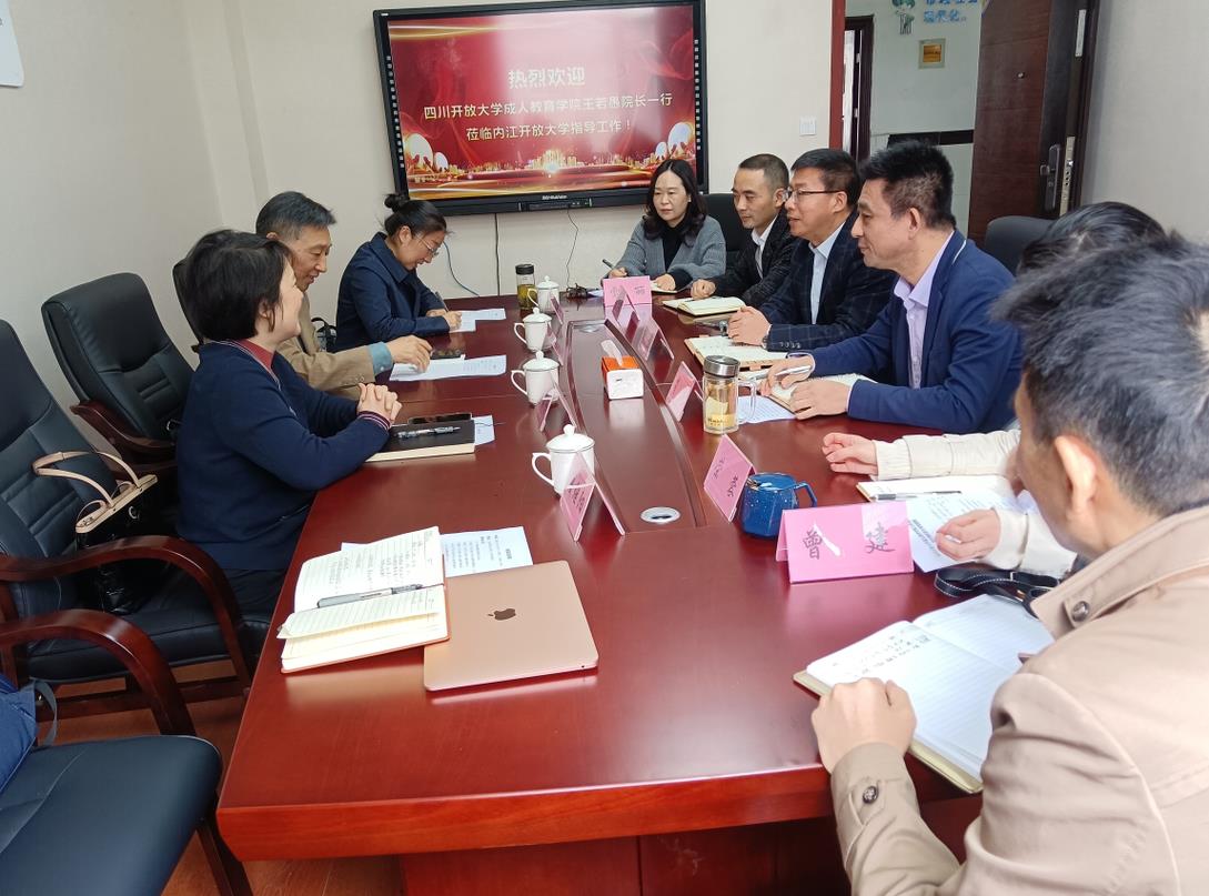 4月25日上午,四川开放大学成人教育学院副院长王若愚一行四人莅临世界杯下单官方网站指导成人教育工作。世界杯下单官方网站党委书记、校长刘毅,副校长肖波及相关人员出席座谈会。