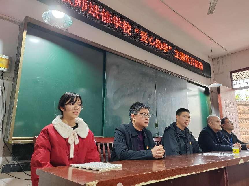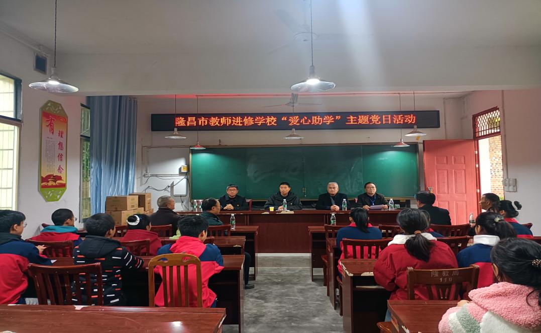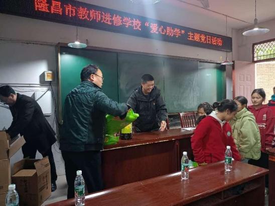 为深入学习贯彻党的二十大精神及习近平新时代中国特色社会主义思想,落实习总书记关于关心下一代工作的重要指示批示精神,弘扬中华民族扶危济困的美德。2023年11月17日下午,隆昌市教师进修学校、内江开大隆昌分校党支部组织全体党员到响石镇前锋中学举行了“不忘初心育桃李,实干担当办实事”慰问贫困学生主题党日活动。