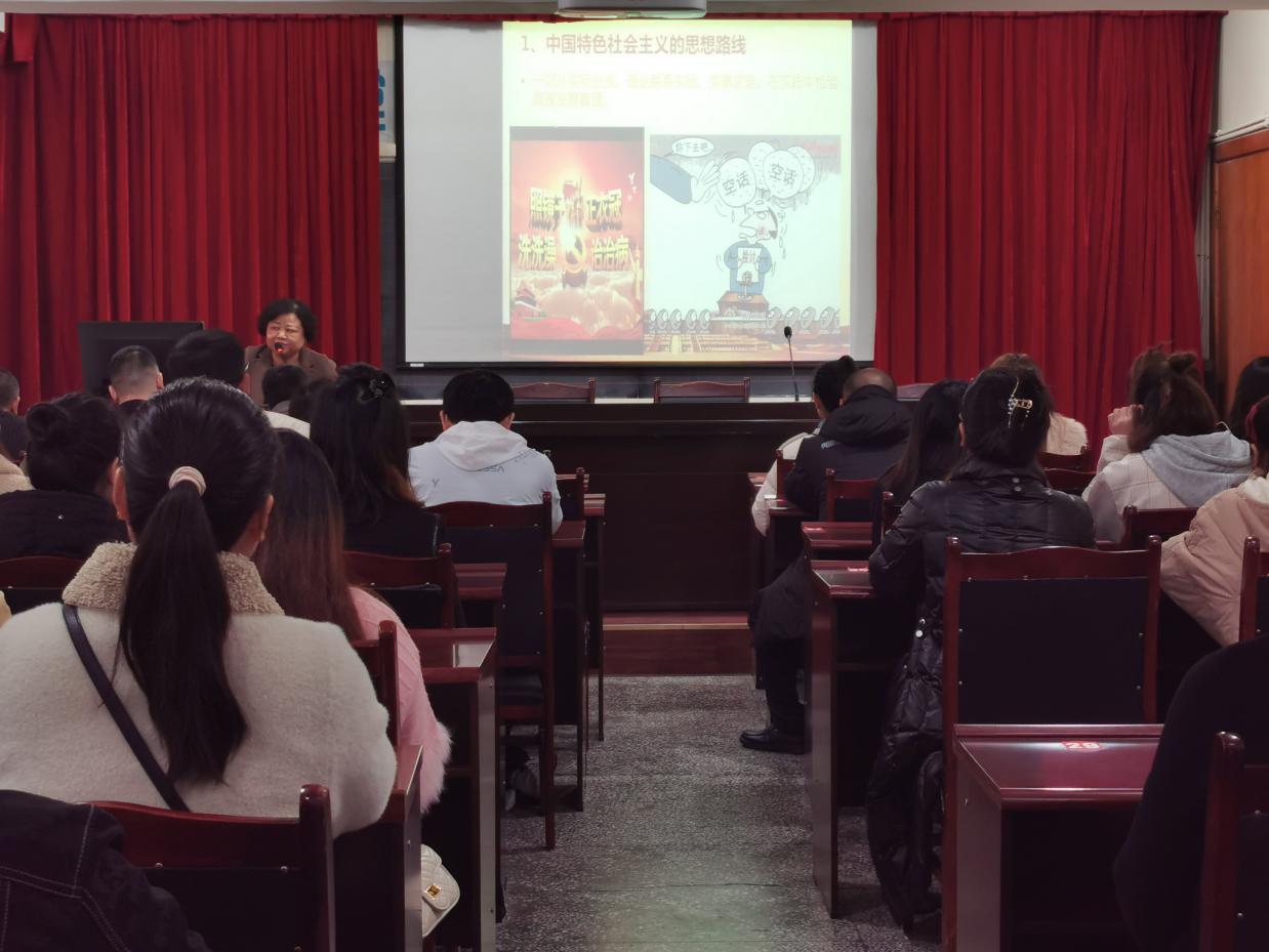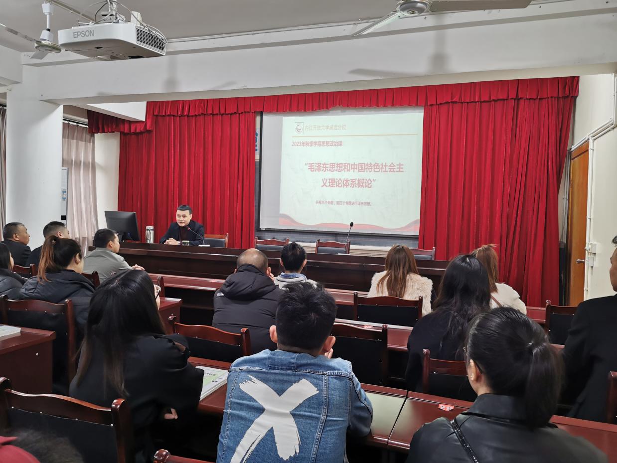 第一阶段的面授课由世界杯下单官方网站威远分校支部书记、校长官群主讲《形式与政策》,支部委员、副校长马新彪主讲《毛泽东思想和中国特色社会主义理论概述》,英语老师李胭红主讲《人文英语2》。