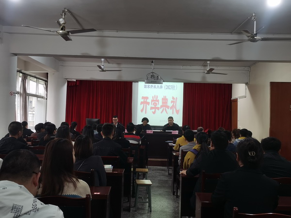 开学典礼由支委委员、副校长曾春明主持。上午8:30,典礼在雄壮的国歌声中拉开帷幕。学校党支部书记,校长官群以“不忘初心 继续前进”为题,介绍了开大深厚的文化底蕴,学校辉煌的发展史;向学员介绍了学习方法要求和技巧,希望大家处理好学习与工作家庭的关系,养成网上学习的习惯;并且代表全体教师表达了为学员竭心尽力提供全方位服务的决心,最后她表示,希望同学们牢记习近平总书记的话:幸福都是奋斗出来的,撸起袖子加油干,成功总是属于积极进取、不懈追求的人们。