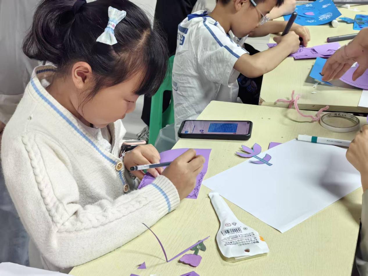 活动现场童趣盎然,多个亲子协作区笑声阵阵,洋溢着欢乐氛围。孩子们发挥天马行空的想象,制作母亲节礼物:剪裁彩色卡纸、用彩笔绘画、用胶带粘图、用黏土制作模型,现场一派忙碌。有的小朋友用斑斓色彩勾勒“我心中的妈妈”;有的制作干花相框、黏土花束,将爱意凝成永恒。