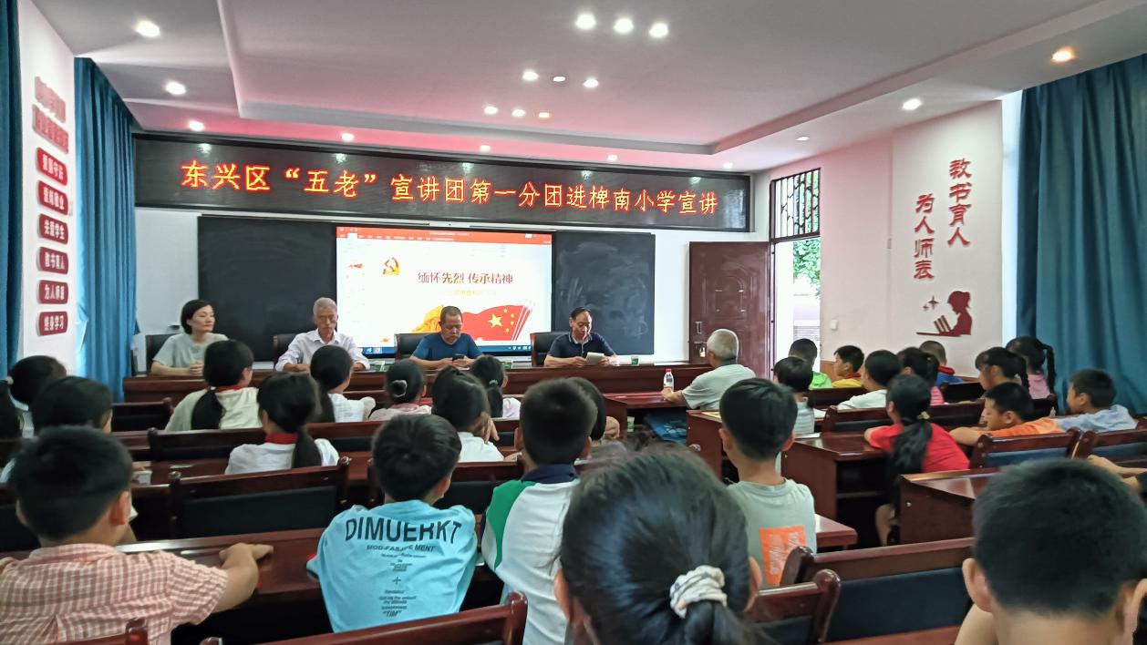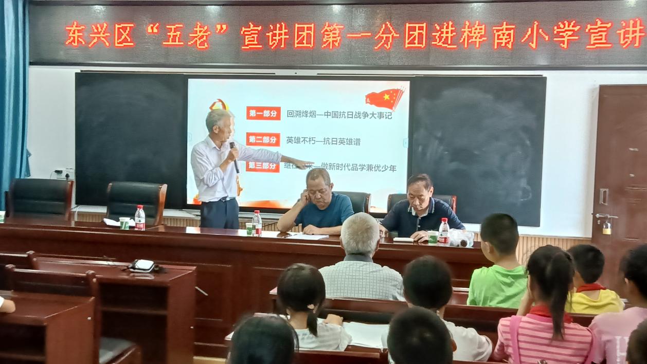 6月18日,内江市东兴区椑木社区学校联合辖区相关单位,组织“五老”宣讲团走进椑南小学校,给师生们讲述抗战历史,弘扬抗战精神。
