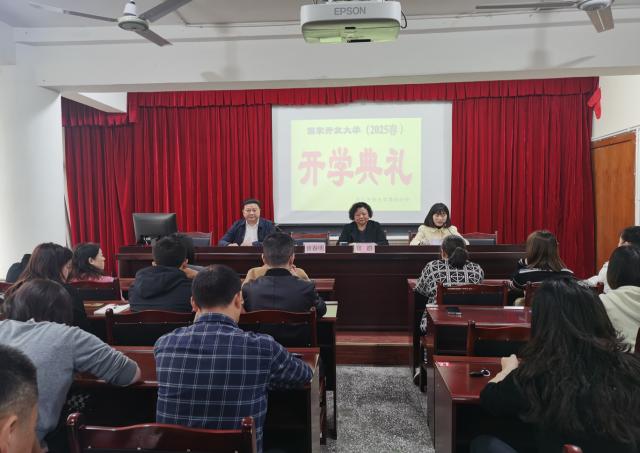 开学典礼由支委委员、副校长曾春明主持。上午9时,典礼在雄壮的国歌声中拉开帷幕。学校党支部书记,校长官群以“不忘初心 继续前进”为题,介绍了开大深厚的文化底蕴,学校辉煌的发展史;向学员传递了“人人皆学、处处能学、时时可学”的核心理念,希望大家处理好学习与工作家庭的关系,打破时空界限,掌握学习方法和技巧,灵活学习,并且代表全体教师表达了为学员竭心尽力提供全方位服务的决心,最后她表示,教育是改变命运的火种,开放大学愿做每一位追梦者的“云梯”。让我们以“开放”为名,共赴无限可能的理想之境!
