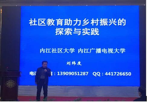 会上,内江社区大学社区教育专家刘纬度,以《社区教育助力乡村振兴的探索与实践》为题作交流发言,向参会人员介绍了内江市依托社区教育助力乡村振兴的经验。