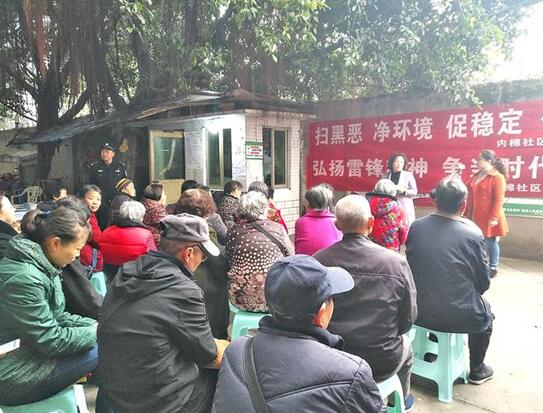 3月13日,内江社区大学(内江电大)内棉社区教育学习中心组织社区干部、“学雷锋”志愿者走进社区各个小院宣传平安建设、扫黑除恶、公租房申请条件、创建国家级卫生城市、创建第五届四川省文明城市等内容,受到社区群众欢迎,群众表示“这样的知识宣传管用、实在”。