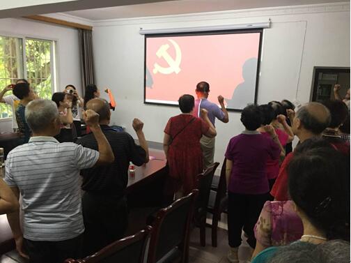 “我志愿加入中国共产党,拥护党的纲领,遵守党的章程……”6月20日下午,内江社区大学内棉社区教育学习中心传来了一阵整齐的宣誓声,数十名老党员齐聚于此,重温入党誓词,纪念中国共产党建立9 8周年。