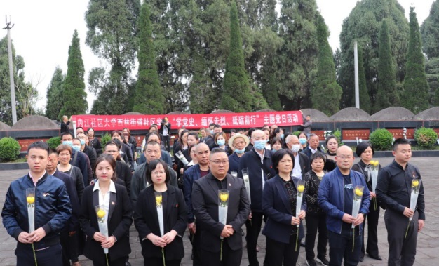 3月30日,内江社区大学西林街道社区学校在东兴区双才镇烈士陵园开展“学党史、缅怀先烈、砥砺前行 ”主题党日活动。本次活动由西林街道社区学校承办,金牛、锦绣、五星社区学习教育中心的党员干部、居民小组长、网格员约160人参加。