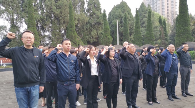 随后,党员代表发言,主持人带领大家宣誓,庄严承诺继承和发扬革命先烈的遗志,以不忘初心的方式谨记新时代使命,并向烈士默哀、鞠躬、献花。