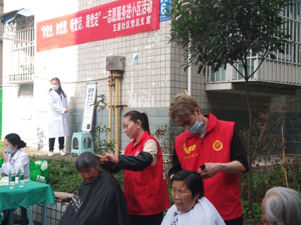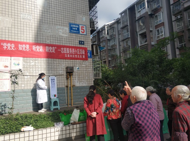 为构建社区服务体系,建设平安和谐社区,给广大社区居民的居家生活提供便利,内江社区大学五星社区教育学习中心联合爱心志愿者及爱心企业渥迪眼科、型人坊美业,于4月26日在北渡五队小区开展“学党史、知党恩、听党话、跟党走”志愿服务进小区活动。
