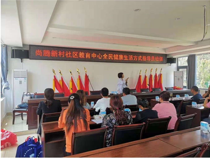 内江社区大学尚腾新村社区教育学习中心 开展全民健康生活方式指导员和 健康支持工具运用培训 为进一步倡导科学、健康、文明的生活方式,推进全民健康生活方式行动向基层延伸,4月28日,内江社区大学尚腾新村社区教育学习中心与市中区疾控中心联手,共同开展全民健康生活方式指导员和健康支持工具运用培训。尚腾新村“两委”干部、各村民小组长共20余人参加。