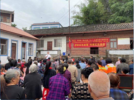 “今天我想给大家讲一个故事,大家跟着我的故事一起学习。”当天上午,社区大学特聘社区教育专家程从刚在小学的操场开讲,他结合内江的本土故事绘声绘色地向现场的孩子和家长讲述党史及孝德文化,孩子们听得津津有味。