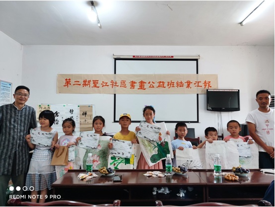 7月4日,内江社区大学圣江社区学习教育中心第二期书画公益班举行了结业典礼,为期3个月的国学公益讲堂书法、国画圆满结业。