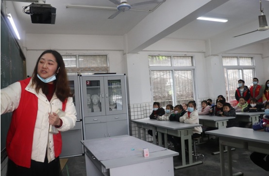 当天上午10点,椑木镇水晶小学校迎来了一批“特殊老师”,他们是椑木镇乡村振兴志愿者服务队的队员。