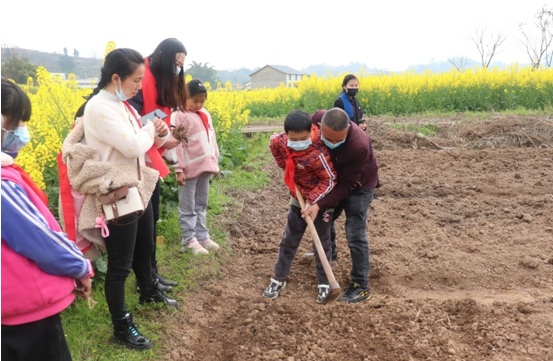 活动最后,水心坝村的种菜能手与椑木镇乡村振兴志愿者服务队、椑木镇水晶小学校师生下地播种。劳动实践活动让参与者体验到“盘中餐粒粒皆辛苦”的真正内涵。