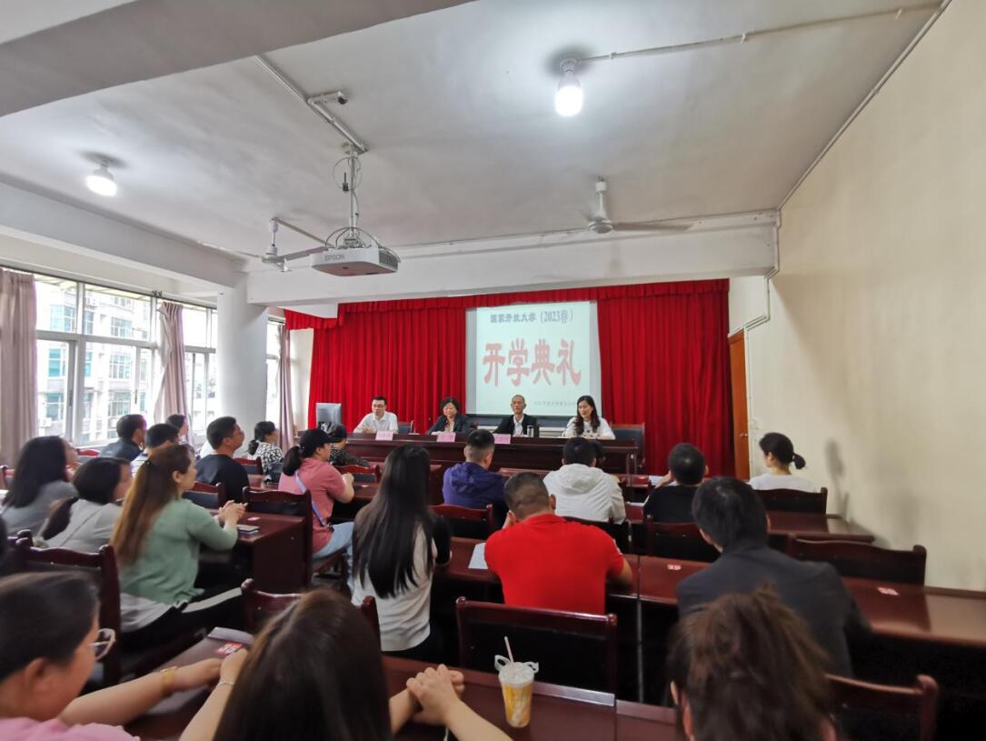 开学典礼在嘹亮雄壮的国歌声中开始,官群在开学典礼上致辞,对新生的到来表示欢迎和祝贺,并介绍了学校情况, 阐释了学校的办学优势,展示了学校的办学成绩,阐述了学习的重要意义及价值追求。典礼上,官群对全体新生提出了三点希望和要求:一是要珍惜学习机会,不忘报读开大的初心。二是端正态度,成为“会学习的人”,希望同学们认清学历提升难度不断加大的严峻形势,增强紧迫感,端正学习态度,尽快转变角色,按时、按要求完成网上学习任务,完成各项作业,通过各类考试,圆满顺利的完成学业。三是要处理好工学矛盾,加强与班主任沟通联系。官群勉励大家在未来三年的日子里要做一个无愧于伟大时代的开大人、在执着追求中不忘初心、放飞梦想,通过自己不懈的努力去赢得无怨无悔的人生。