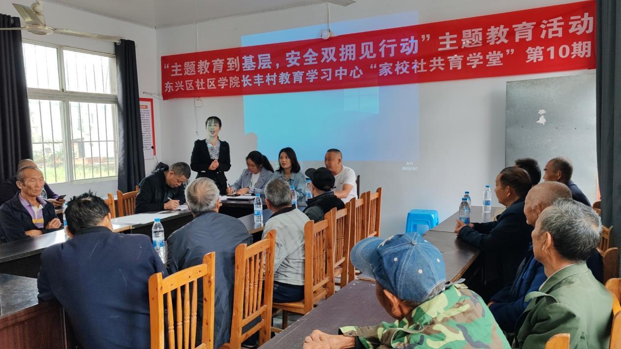 10月11日,内江社区大学长丰村社区教育学习中心组织开展“主题教育到基层,安全双拥见行动”主题教育活动。东兴区社区学院、长丰村党员干部和村民代表聆听专业人士讲课。