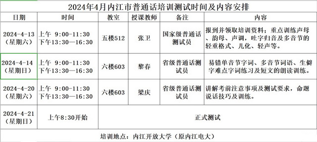 请参加内江市2024年4月普通话培训的考生于4月13日上午8:30到世界杯下单官方网站5楼师培中心报到并领取考试复习资料。