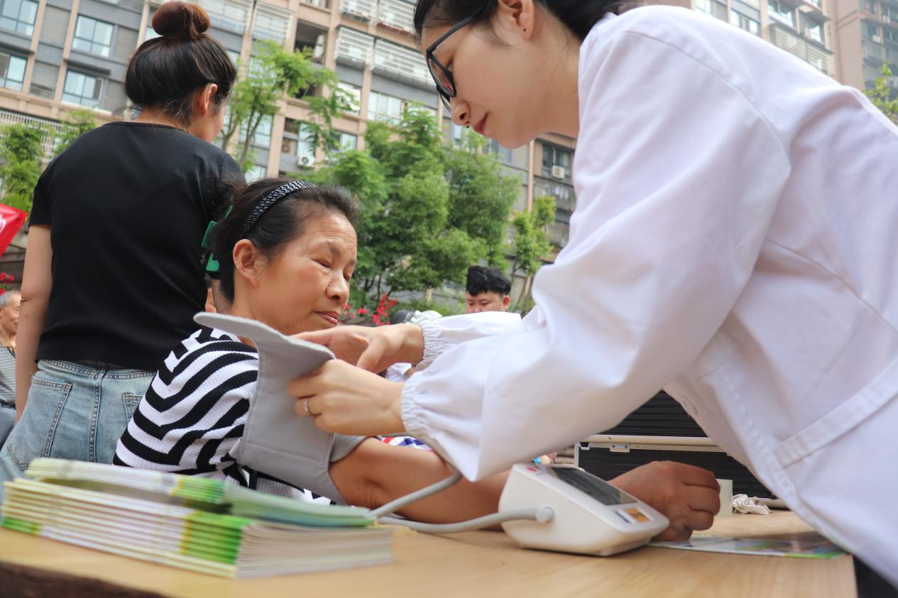 “孩子们平时都在外地打拼,我们这些老家伙啊,多多少少都有血压问题,真让我一趟医院,还真不容易,你们来了好啊…”活动现场的奶奶亲自拉着志愿者的手,用朴素话语表达着感谢。“奶奶,您平时要注意饮食要清淡,多注意饮水”“爷爷,这降压药您可要记得按时吃,要每天保持好心情哈……”志愿者们声声关切,句句暖心。