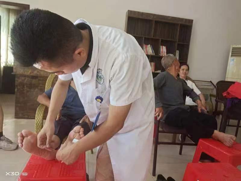 义诊现场,椑木镇中心卫生院中医科、针灸科医生为居民测量血压、检测血糖、针灸理疗、按摩问询、解疑答惑,热情而周到。“刘医生,我眼睛有点肿,睡不好觉,是咋的?”中医科医生刘胜菊点位排起了长队,有的咨询基础病康养知识,有的请求查胸闷,有的查口苦少津。刘胜菊望闻问切,详细了解病因病情,和医生们一起守护居民健康。“参加志愿活动,我很开心,因为付出就是得到,奉献就是收获。”刘胜菊认为,每次义诊,看到居民满脸的笑容,自己心里就很甜,很开心,这是坚持志愿服务的原动力。